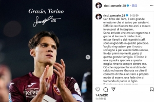 体育资讯7月5日讯 米兰已经官宣签下23岁中场里奇,后者也通过社媒撰文告别都灵: