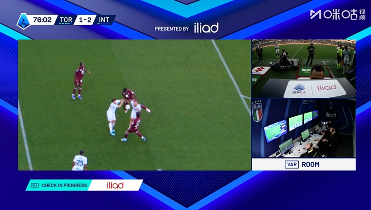 04月27日讯 意甲第34轮,国米客战都灵。75分钟,VAR介入,主裁亲自观看回放,判罚奥古斯托禁区内手球,都灵获得点球。